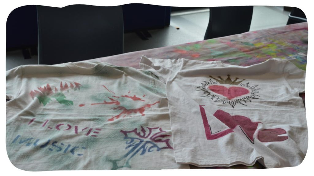 “It was a wonderful day. Sissy was a brilliant workshop leader and made sure everyone was included. Everyone that participated went home with a t-shirt they designed and a huge smile on their face. They chose their own designs and really enjoyed using the spay cans.”