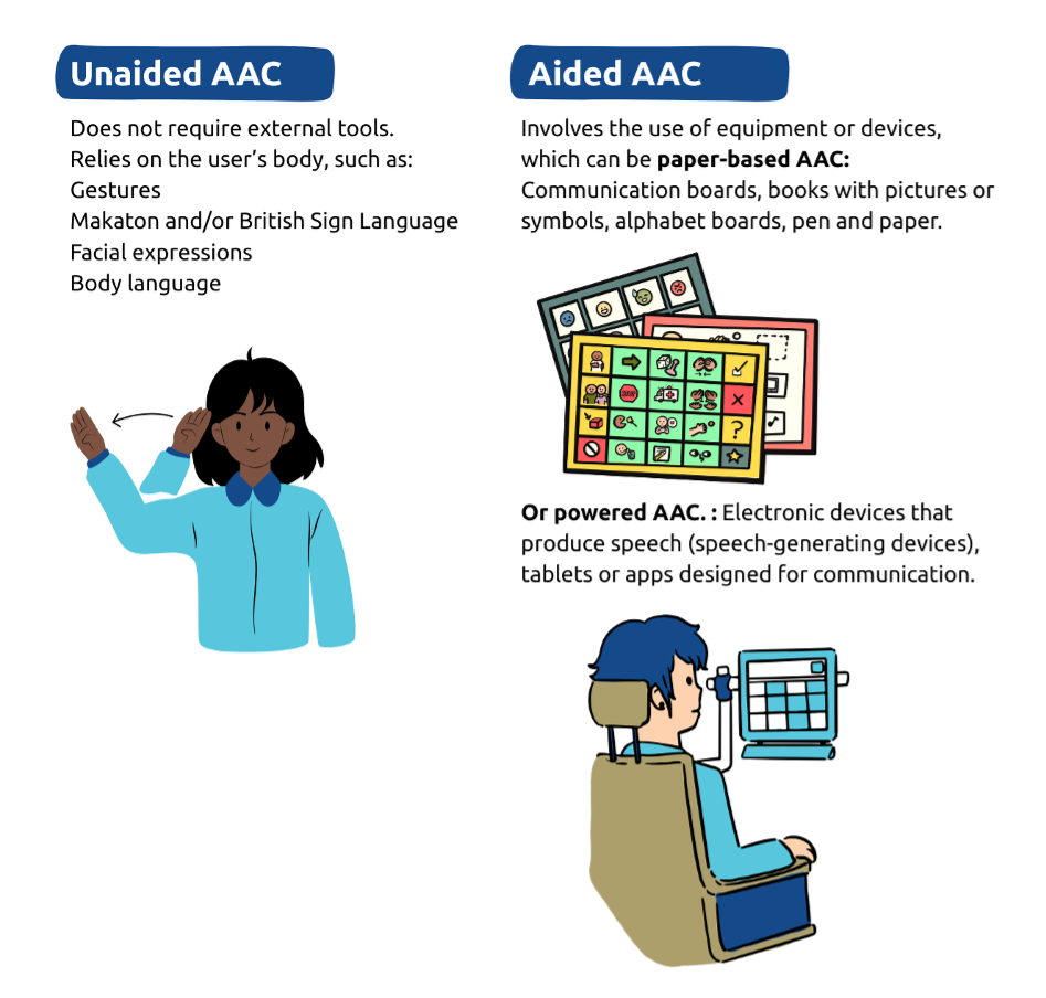 Communication devices are electronic tools with specialised software that support communication. These devices can be accessed in various ways, including direct touch, joysticks, or eye-gaze technology.
