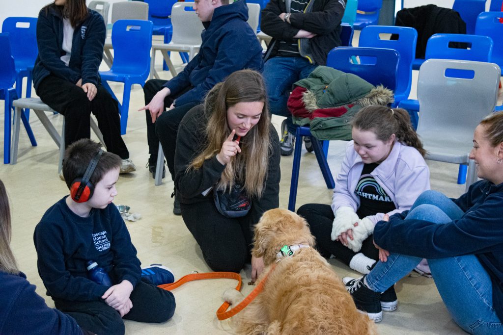 Students from Ashcroft and Inscape House schools enjoyed a visit from Laura, Noah, and assistance dog Summer from Wild Spirit Training this week.