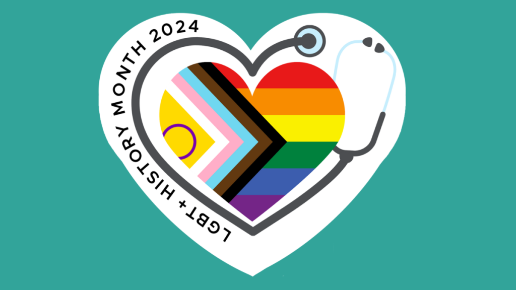 Alex Gould’s winning design, featuring a love heart under a stethoscope, reflects the LGBT+ History Month theme in the UK this February – ‘Medicine – #UnderTheScope’.