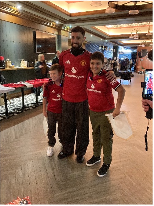 In October, Jude was invited to the club to take part in the filming of a Christmas television advert. During the day, he met members of the men’s first team, including goalkeeper Tom Heaton, and participated in filming alongside them. As part of the experience, Jude was presented with a full Manchester United kit and received a special gift from team captain Bruno Fernandes – a pair of football boots.